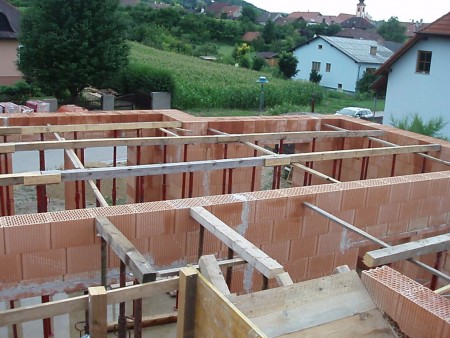 Deckenverlegen über EG und Garage + Betonieren + DG aufmauern